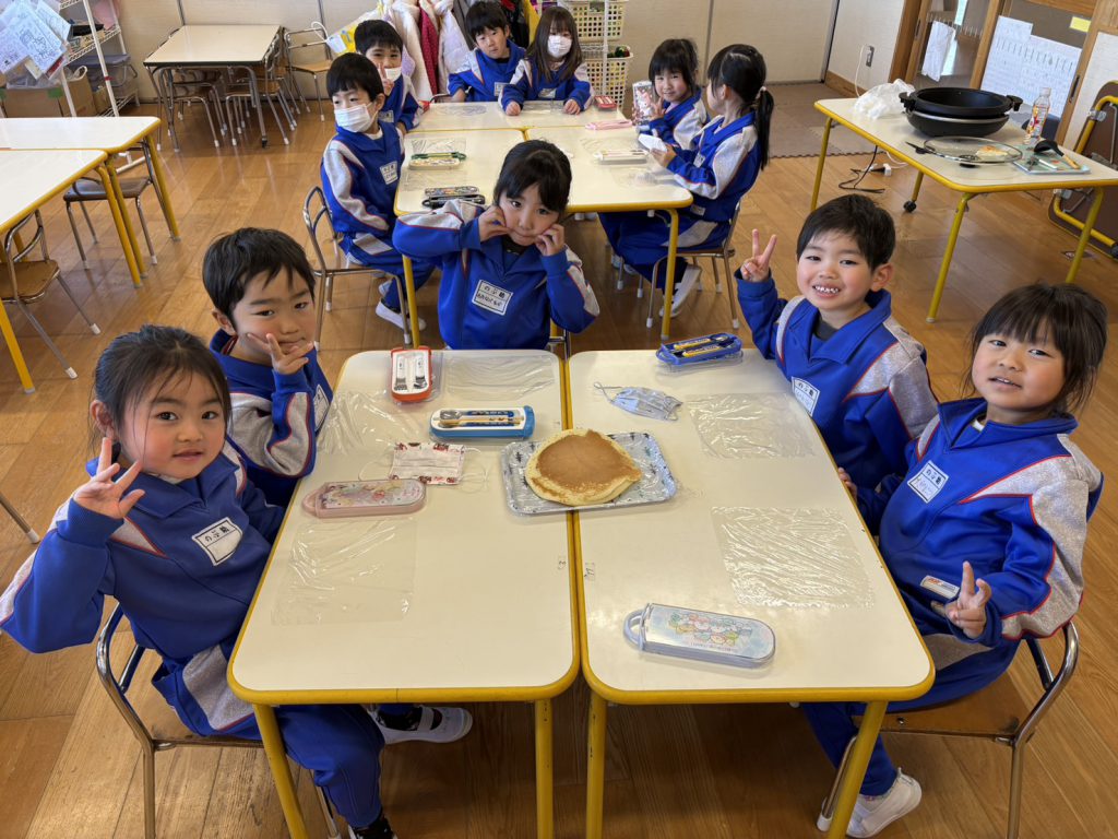 自分たちで作ったホットケーキは甘くて一段と美味しく、ペロリと完食していました!!
